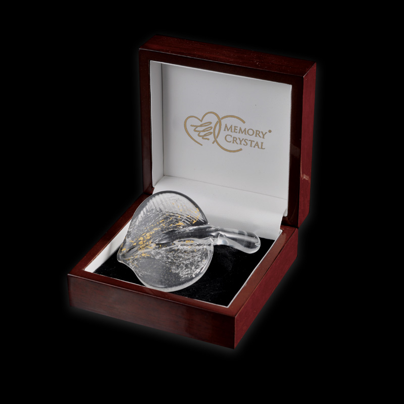 Les cendres d’un être cher décédé sont directement scellées dans une feuille en cristal de haute qualité avec de l’or 24 carats. Cette feuille a été conçue en complément à l’arbre des souvenirs (code: MC 18-0) pour former un ensemble. (set de famille) Les deux produits peuvent être commandés séparément.