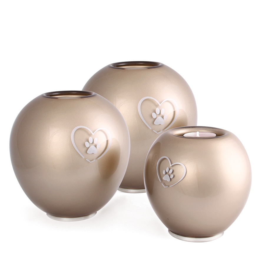 Toutes nos urnes pour animaux de compagnie sont des pièces uniques fabriquées à la main, et sont produites dans notre propre manufacture Memory Crystal®. L’effet visuel global est obtenu par vaporisation métallique de l’urne en verre ainsi que le sablage d’une patte/ coeur sur la surface. La spécificité de cette urne est qu’elle peut être utilisée également comme bougeoir.
